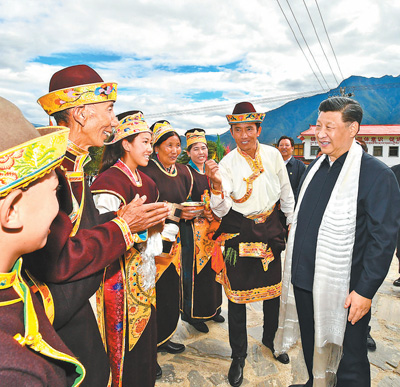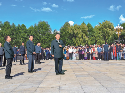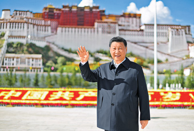 22日下午,习近平在布达拉宫广场,同游客和当地群众亲切交流。 |