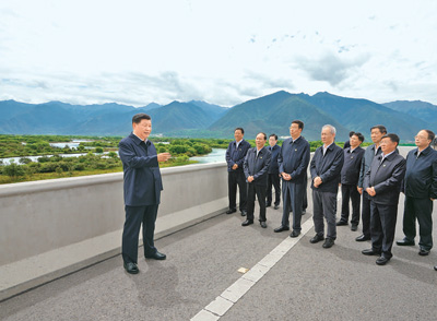 21日上午,习近平在林芝尼洋河大桥考察雅尼湿地。 |