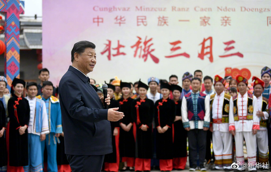 27日上午,正在广西南宁考察调研的习近平总书记,来到广西民族博物馆,参观壮族文化展,观看三月三“歌圩节”壮族对歌等民族文化活动展示,了解促进民族团结进步和民族文化保护传承等情况。(文字记者:张晓松、朱基钗;摄影记者:鞠鹏、谢环驰、申宏) ​​​